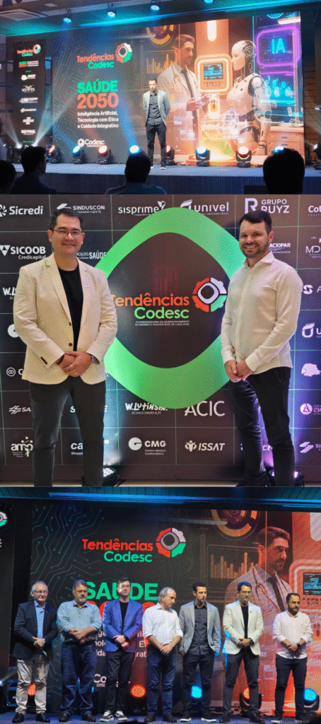 Representando a Associação Médica de Cascavel, estiveram presentes: Dr. Cesar Kawakami, diretor administrativo e financeiro da AMC e representante da Câmara da Saúde no CODESC. Os diretores da entidade destacam a importância de a medicina participar ativamente das discussões sobre inovação, garantindo que a tecnologia seja utilizada para ampliar o acesso e qualificar o cuidado; Dr. Cristiano Mroginski, presidente da AMC, reforçou que a entidade mantém seu compromisso de acompanhar os movimentos de transformação na área da saúde e de dar voz às demandas dos profissionais médicos.